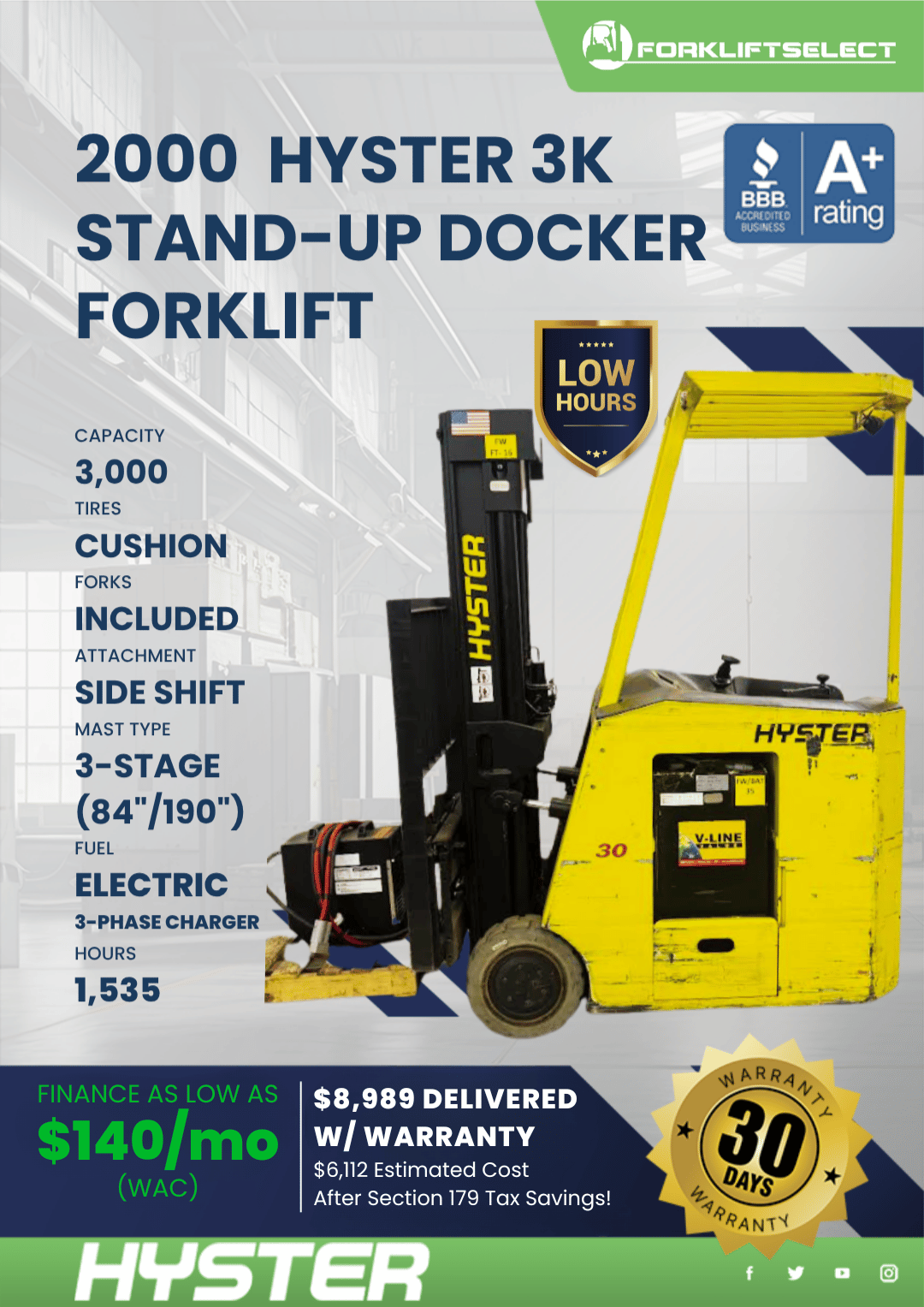 2000 HYSTER 3K STAND-UP DOCKER FORKLIFT