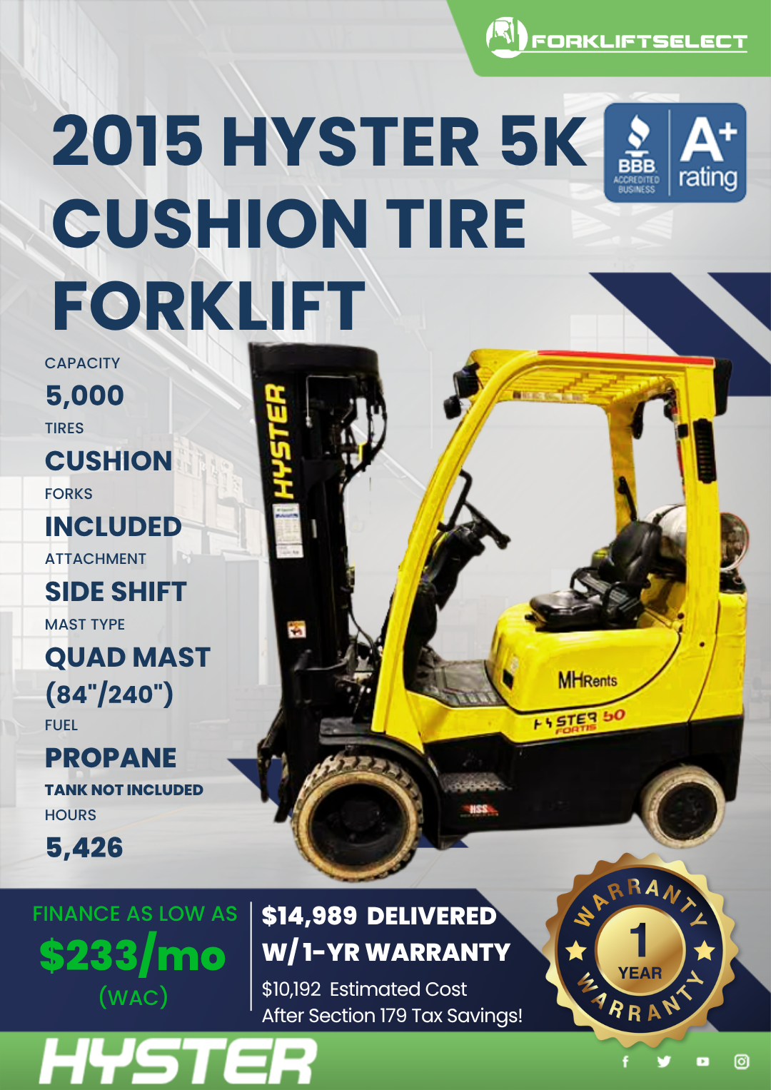 2015 HYSTER 5K CUSHION TIRE FORKLIFT quantity