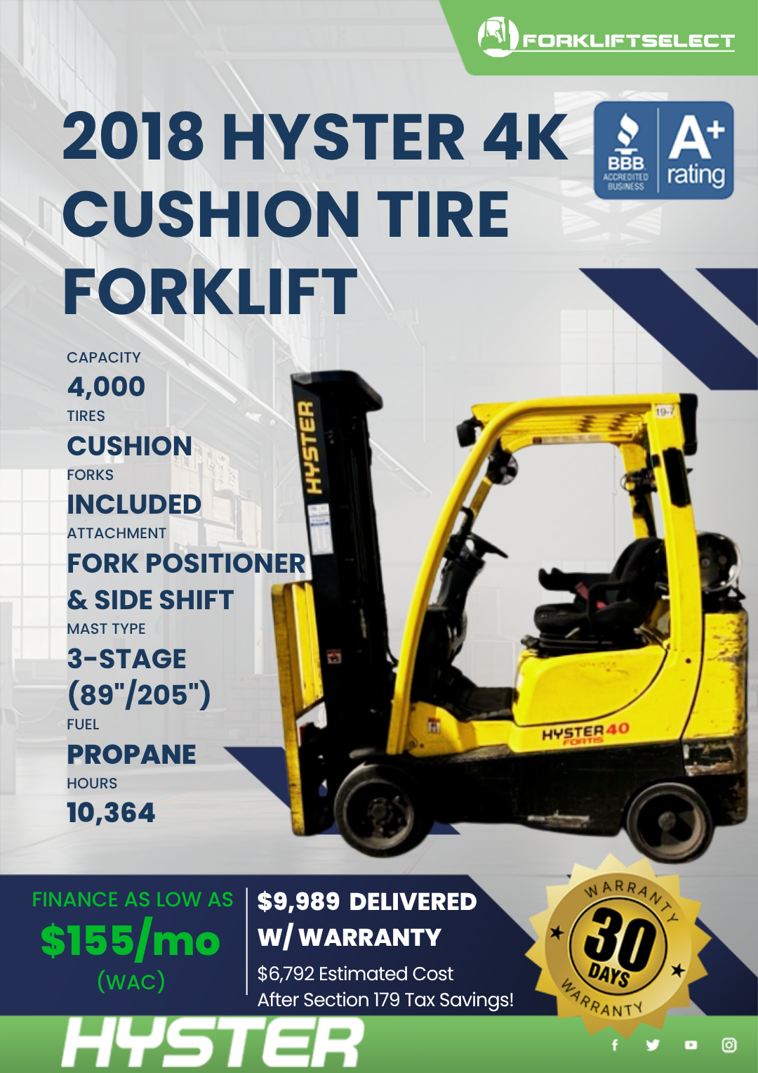 2018 HYSTER 4K CUSHION TIRE FORKLIFT