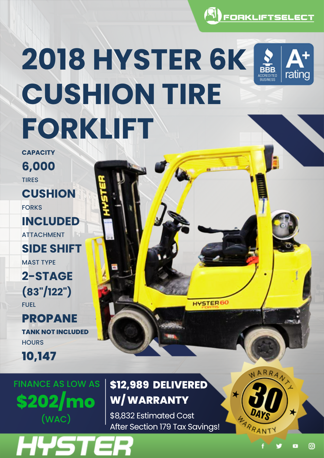 2018 HYSTER 6K CUSHION TIRE FORKLIFT