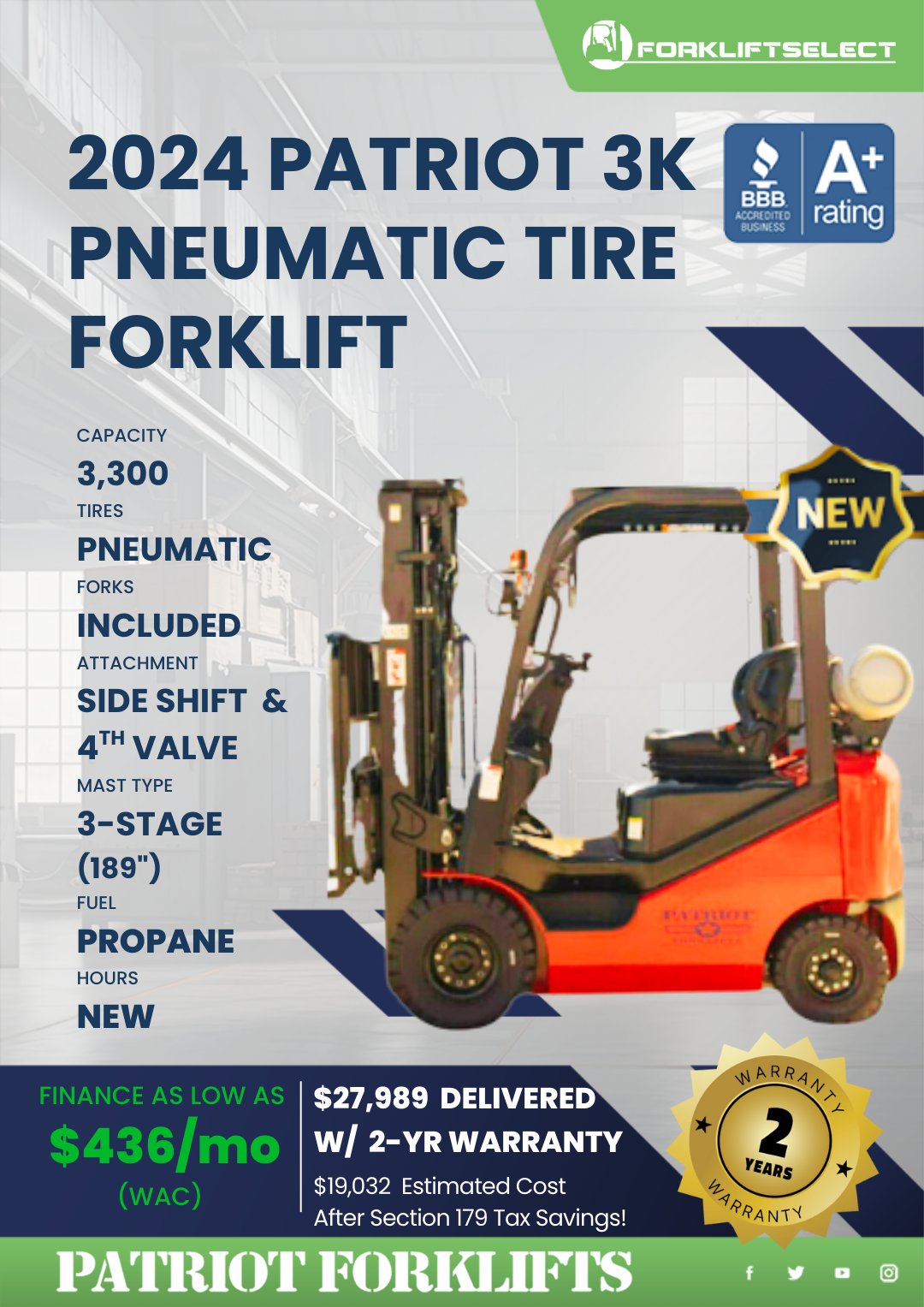 2024 PATRIOT 3K PNEUMATIC TIRE FORKLIFT
