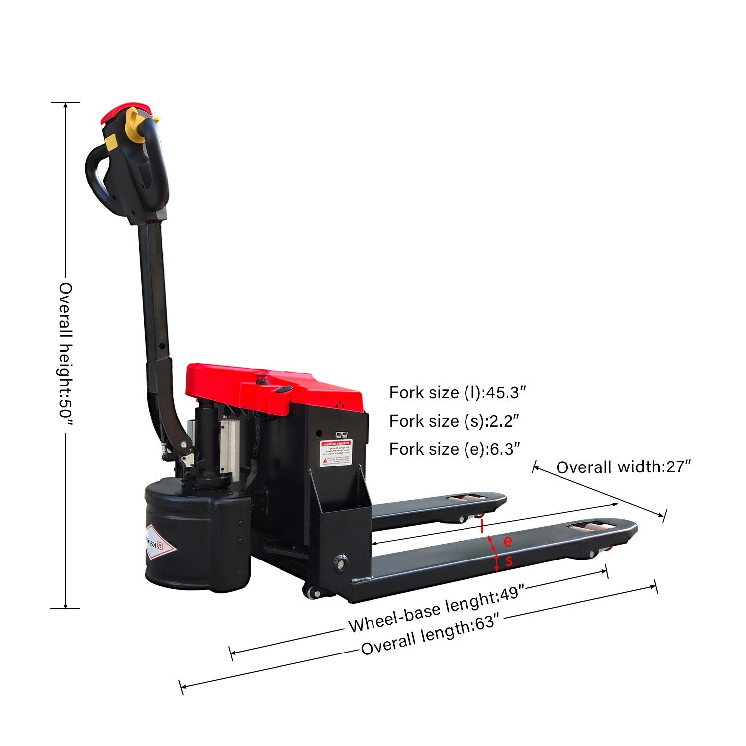 Full Electric Pallet Jack| 3300 lbs| 45″L*27″W Forks| PU Wheels | KX-QDCXa15